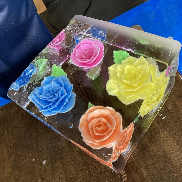 ![]() ![]() 電動ドリルを使い 氷の中に花のオブジェを彫刻します。 他にはない立体感と色付けで仕上げた 質の高い作品です。 ![]() ![]() という意味を込め 「氷工房にはし」が名付けた造語です。 |